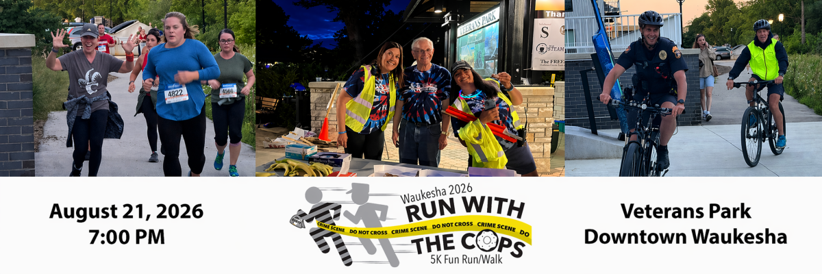 Waukesha Citizens Police Academy Association, Inc. (WCPAA, Inc.) is a group of citizens that volunteer their time and talent to support the Waukesha Police Department and help raise funds for the department’s needs. In 2014, we hosted the inaugural Run From the Cops Fun Run/Walk. WCPAA’s goal was–and is–to unite the Waukesha Police Department with the citizens of Waukesha for a fun, light-hearted night. We are looking forward to the 11th anniversary of this run and we are excited to see everyone again this year.